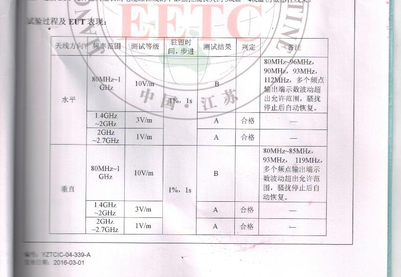我国工业自动化仪表行业产品类标准是GB/T18268《测量、控制和实验室用的电设备电磁兼容性》(idtIEC61326),该标准规定的EMC试验项目有静电放电、射频电磁场辐射、额定工频磁场、电压暂降、短时中断、脉冲群、浪涌、射频场感应的传导骚扰、辐射发射、传导发射。未来新的标准将会增加谐波和电压波动测试要求,并对不同类别的仪表提出特,殊的EMC要求。