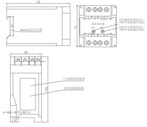 ●35mm标准导轨安装或底座螺钉安装,通用性强