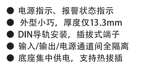 ● 24V供电,输入 、输出、电源,三端口全隔离