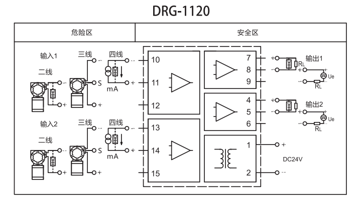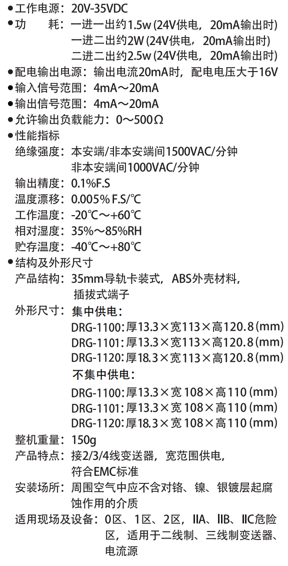 DRG-1100、1101、1120 变送器、电流源输入检测端隔离栅