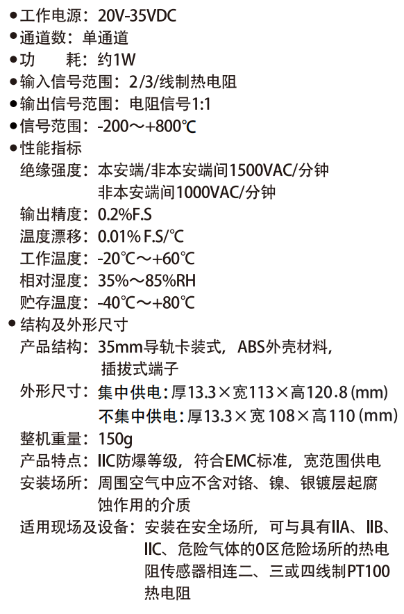 DRG-4000 热电阻输入热电阻输出隔离式安全栅