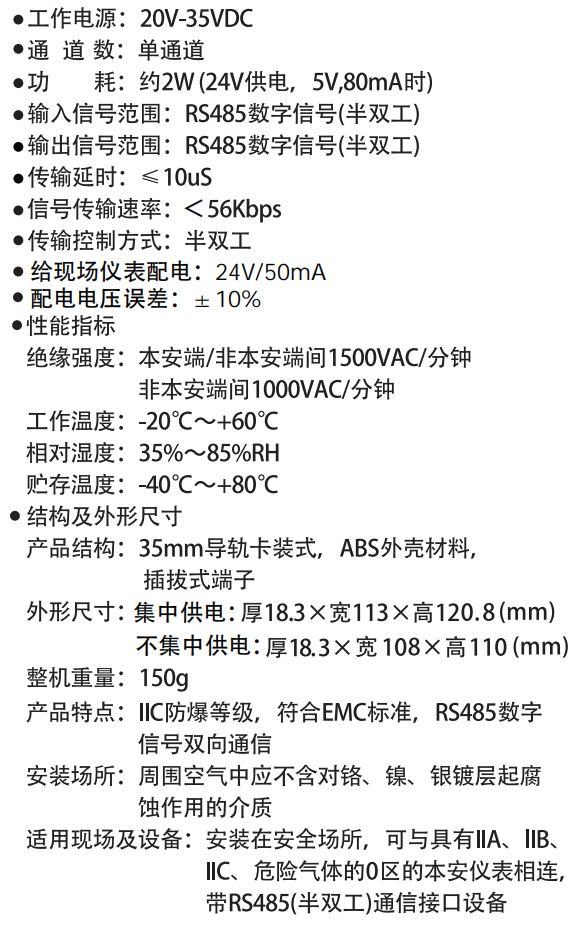 DRG - 2200 -A RS485半双工隔离式安全栅(24V配电)