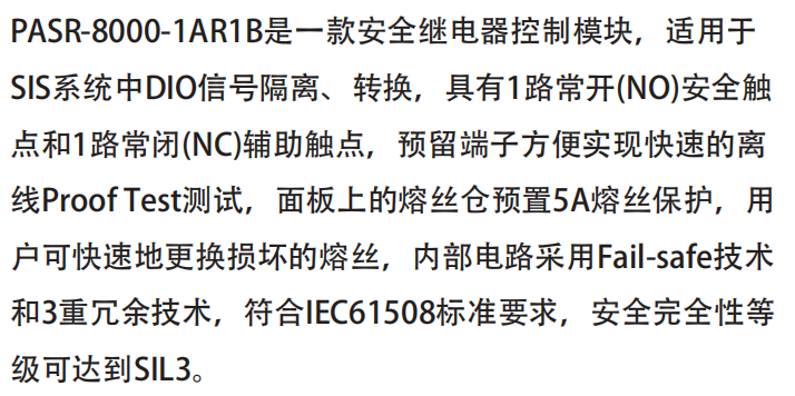 PASR-8000-1AR1B DO信号(SIS系统)1NO+1NC安全继电器