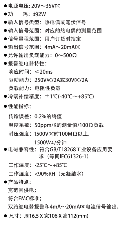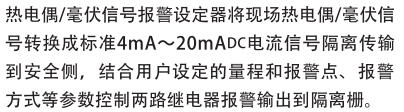 ● 结合用户设定的量程和报警点、报警方式等参数控制两路继电器报警输出到隔离栅。