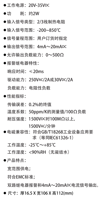● 结合用户设定的量程和报警点、报警方式等参数控制两路继电器报警输出到隔离栅。